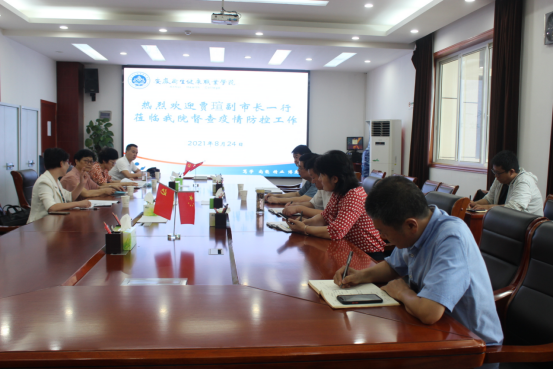 8月24日上午,池州市政府副市长贾瑄莅临我院检查指导学校疫情防控和开学准备工作。市教体工委书记、市教体局局长胡学慧,市卫生健康委二级调研员路文敏陪同。院领导谢瑞瑾、张兵、张红,督导员范有华,相关部门负责同志参加座谈会。